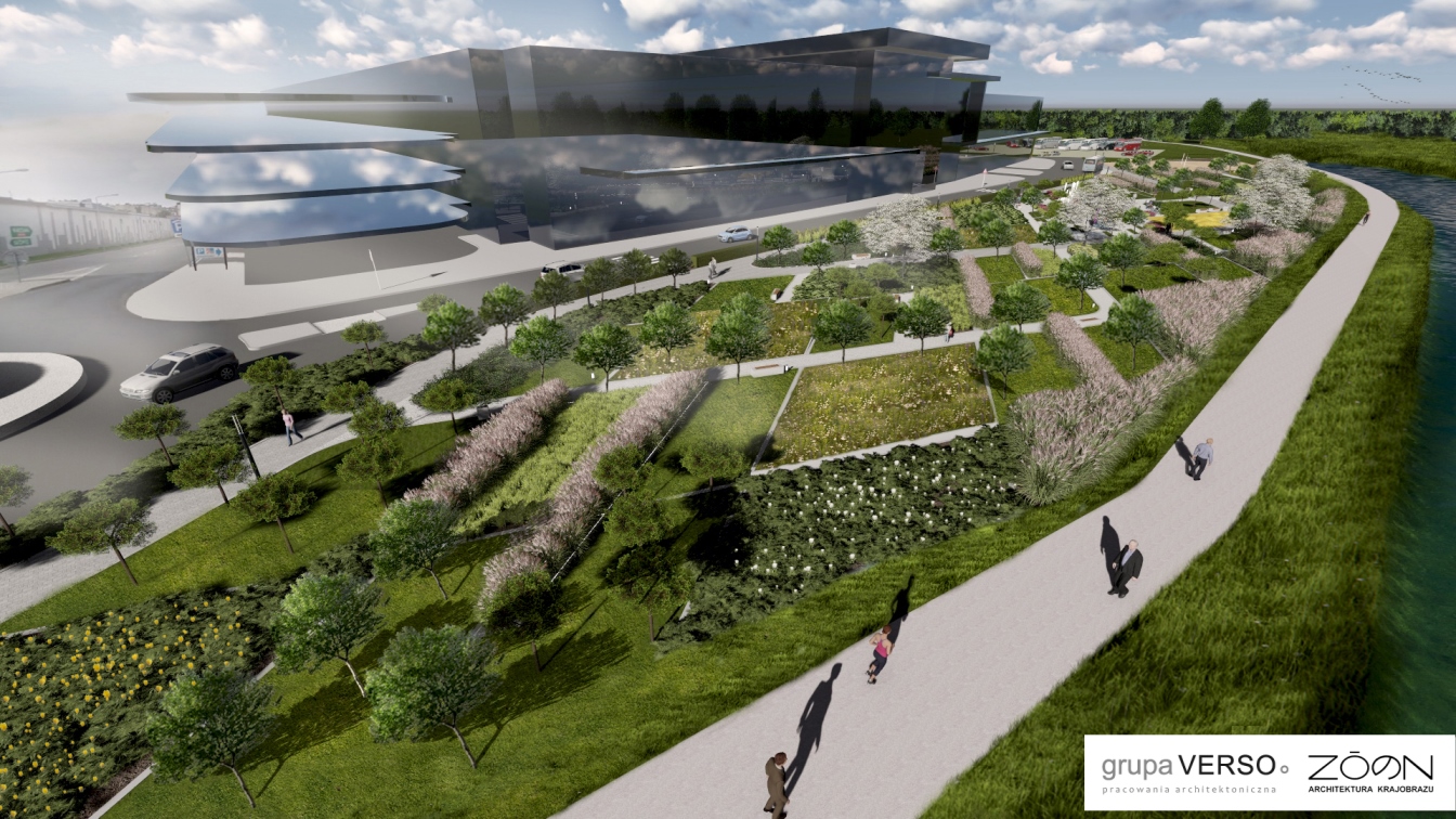 Efektem ma być pierwszy w Częstochowie miejski ogród nad rzeką. Na powierzchni ponad 8,5 tys. m kw., czyli nieco większej od boiska piłkarskiego, pomiędzy drogą dojazdową do centrum handlowego a Wartą, galeria tworzy prawdziwą rekreacyjną oazę.