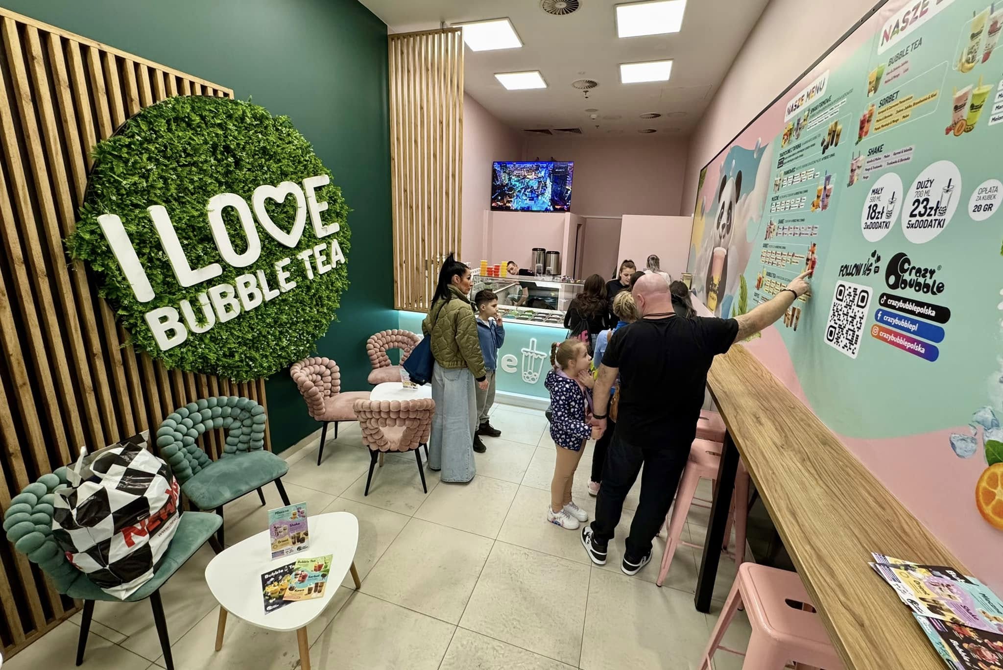 Dodatkowo goście mogą personalizować swoje zamówienia, wybierając spośród bogatej gamy dodatków, takich jak kulki z tapioki, popping boba w ponad 20 różnych smakach, galaretki do bubble tea czy paski z miąższu kokosowego. Nowy lokal Crazy Bubble został zaprojektowany zgodnie z charakterystycznym dla marki konceptem. Klienci mogą zamówić napój na wynos lub skorzystać ze strefy ze stolikami, tworzącej komfortowe miejsce do relaksu.
