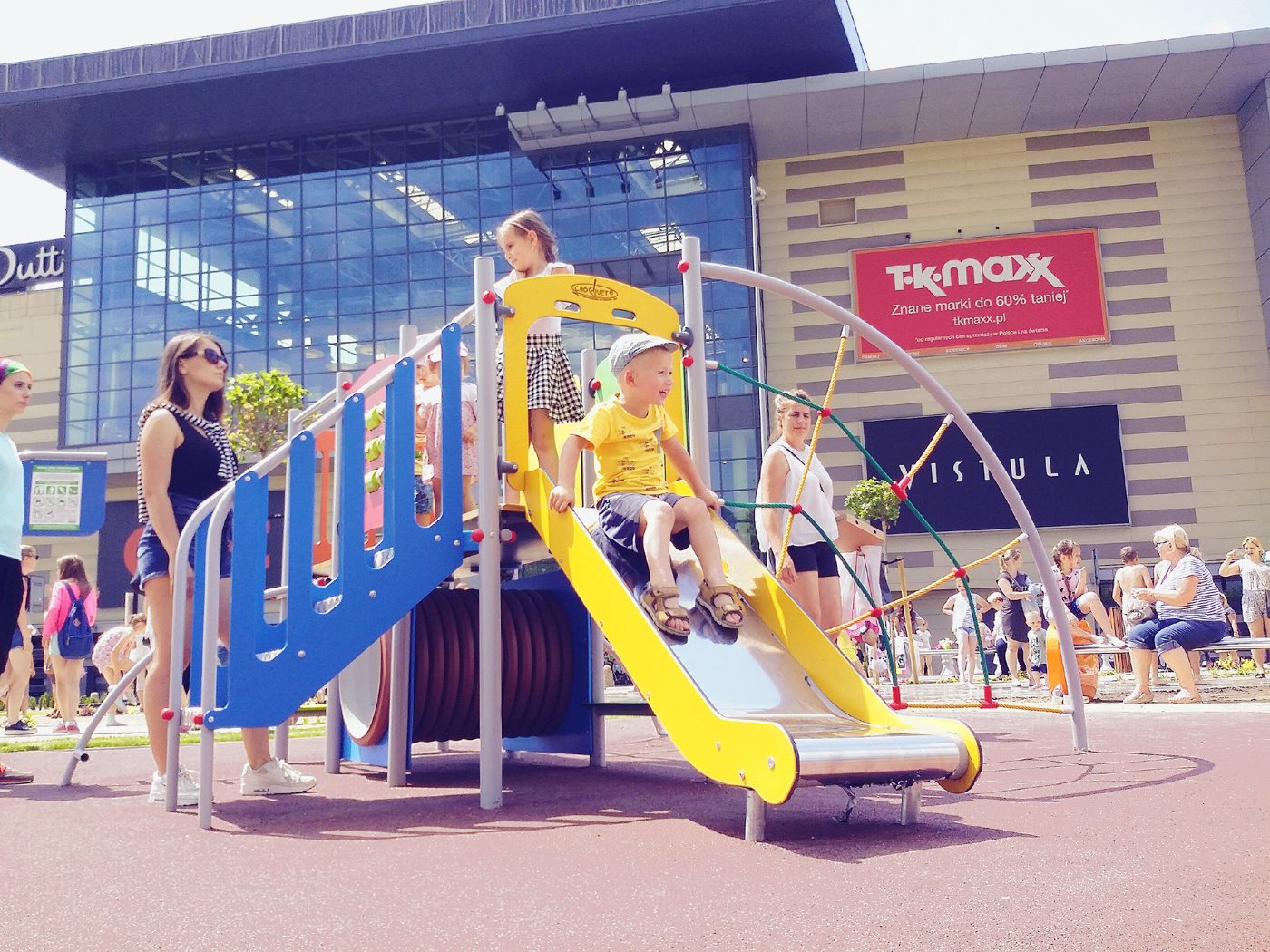 Najmłodsi mogą liczyć także na bardziej tradycyjne rozrywki. Na bulwarach Warty galeria stworzyła aż 2 place zabaw pomyślane o dzieciach w różnym wieku. Znaleźć można na nich m.in. zjeżdżalnie, huśtawki łańcuchowe, i drewniane samochody na sprężynie. Latem frajdy dzieciom dostarcza także fontanna w postaci mokrego chodnika, z którego na kilka metrów strzelają słupy wody. Z myślą o najmłodszych w galerii działa także plac zabaw Bajkowy Labirynt. Wypełniają go atrakcje dla dzieci w wieku 3-12 lat, a także kącik malucha. Najmłodsi znajdą tutaj m.in. basen z piłeczkami, zjeżdżalnie, trampolinę, armatki pneumatyczne i kilkanaście innych zabaw.