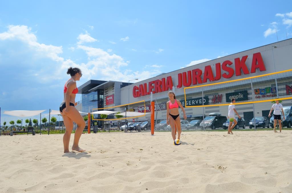 Wizyta w galerii handlowej może dostarczyć także… sportowych emocji. Przy obiekcie w sąsiedztwie bulwarów Warty działają od kilku lat 2 profesjonalne i otwarte dla każdego boiska do siatkówki plażowej. Tereny te wyposażone są w siatkę niezbędną do rozgrywania meczów, a od niedawna także w specjalne zadaszenia dające cień kibicom. – To miejsce, w którym każdy może ćwiczyć, zorganizować turniej siatkarski, mecz lub po prostu uprawiać „plażing-smażing”. Wystarczy zabrać piłkę i leżak. Może także kibicować podczas organizowanych tutaj turniejów. To taka namiastka wakacyjnej i słonecznej Brazylii w centrum Częstochowy – zachęca Violetta Dziubin-Łuszczyk.